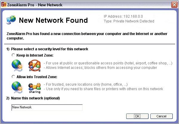 - Возможность автоматически включать новые сети в зону Интернета, для которой могут быть настроены строгие правила. Это защитит компьютер неподготовленного пользователя при его работе в чужих сетях и снимет с него необходимость принятия решения о том, в какую зону следует включить новую подсеть при первом подключении к ней.