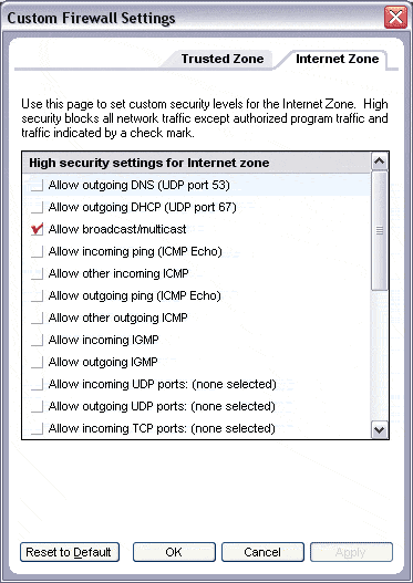 - Для доверенной зоны (например, корпоративной локальной сети пользователя) файрвол может быть выключен при помощи установки низкого (Low) уровня защиты. В тоже время, для зоны интернета файрвол может быть включен. Это снимает с пользователя заботу о необходимости включать файрвол при подключении к чужой сети.