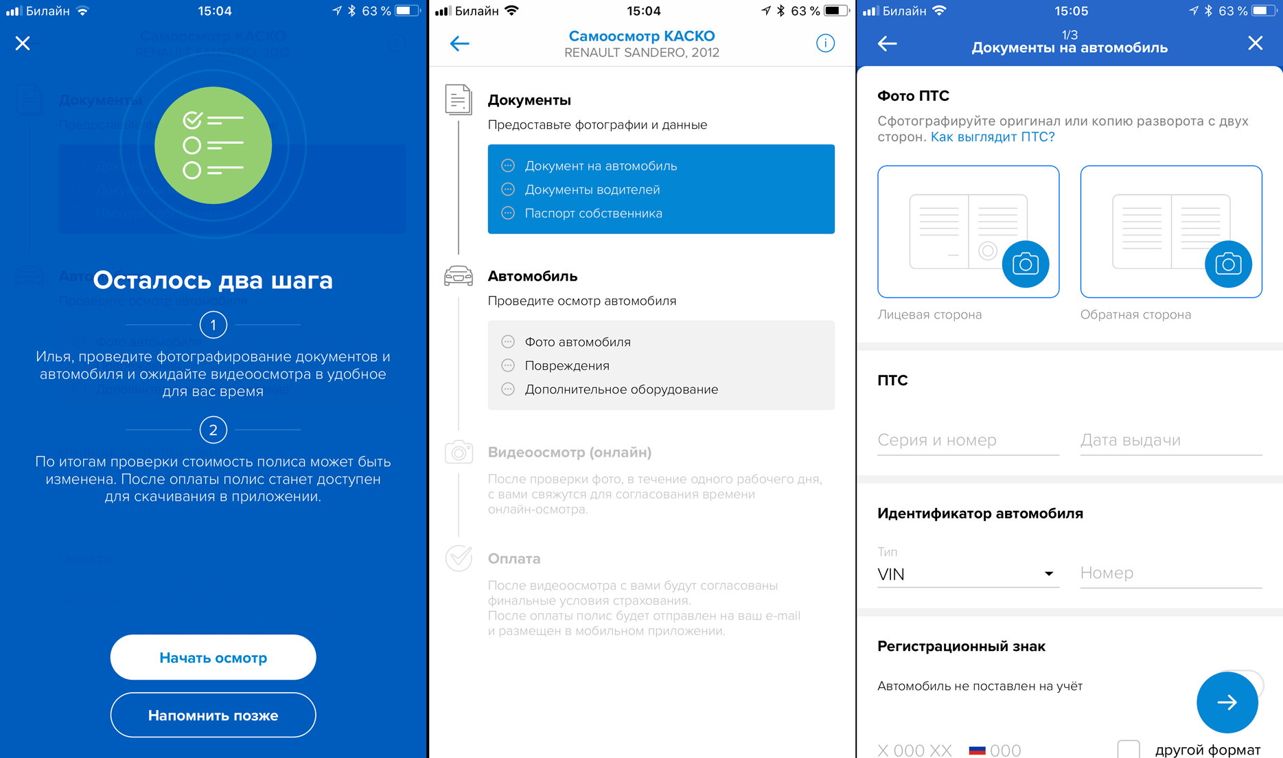 Всё просто: для покупки полиса достаточно найти немного свободного времени и приготовить смартфон с доступом в интернет, ведь теперь вы можете пройти процедуру оформления каско дистанционно, прямо из приложения, благодаря функции видеоосмотра. Впрочем, и другие шаги тоже ускоряются и упрощаются. Но обо всём по порядку.