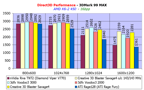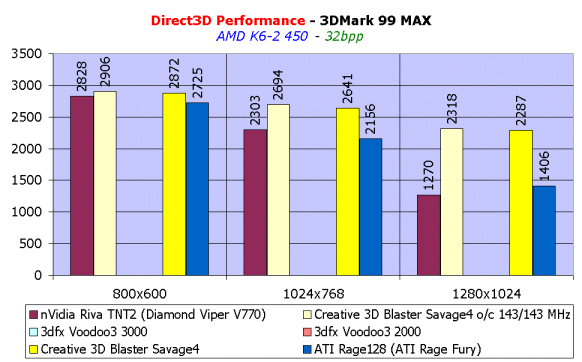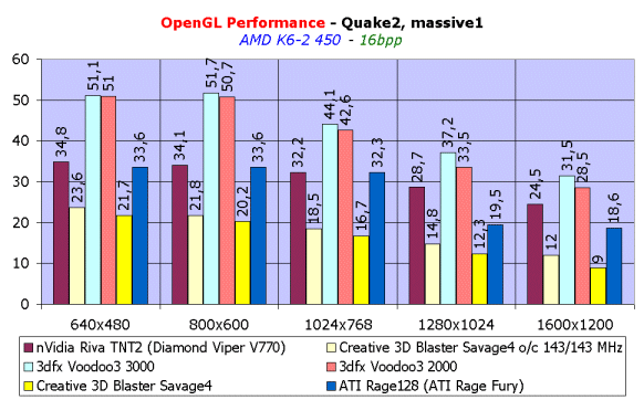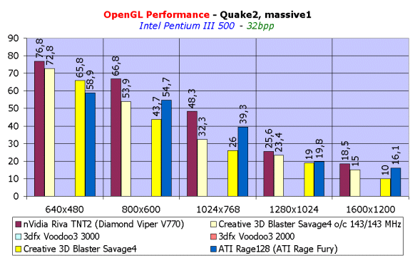 Ну здесь вообще равных Savage4 просто нет! Только немного огорчительно, что режим 1600х1200х32 не поддерживается драйверами Creative 3D Blaster Savage4.