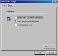 Поддержка S3TC означает, что чипсет S3 Savage4 умеет "на лету" распаковывать эти текстуры по мере необходимости. В драйверах Creative 3D Blaster Savage4 есть возможность установки либо автоматического распознавания наличия сжатых текстур и использования S3TC, либо полного отключения этой технологии. Опыт показал, что лучше заведомо знать, какая игра поддерживает S3TC и включать ее только при необходимости, так как иначе драйвер постоянно отслеживает наличие сжатых текстур, что приводит к некоторому снижению производительности видеоплаты.