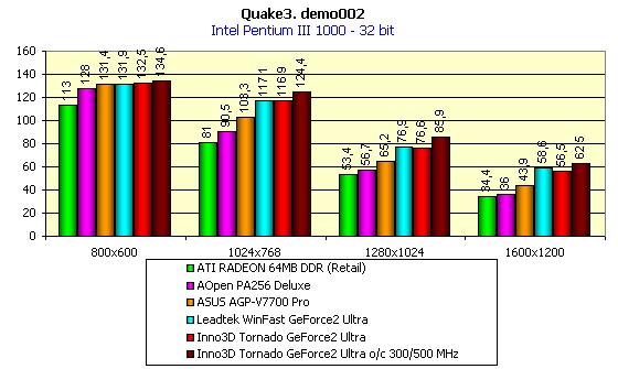 Подведем итоги анализа производительности рассмотренной платы Inno3D Tornado GeForce2 Ultra: