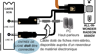 Аккуратно сделанный пластмассовый бокс соединяется с платой толстым шнуром, оканчивающимся внушительным многоконтактным разъемом с защелкой. Из этого разъема выходят еще два тоненьких шнурка. Один из них идет на линейный вход звуковой карты, а второй через разъем mini-jack "врезается" в сигнал с линейного выхода звуковой карты. Понять необходимость в таком соединении я не смог, тем более что на самой видеокарте также имеется еще один разъем для подключения к любому свободному внутреннему входу звуковой карты, например aux или cd-in. И такое подключение мне видится более разумным и простым.