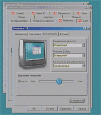 С окном видеооверлея все оказалось гораздо мудренее. В многомониторном режиме оверлей возможен только на тех устройствах, которые имеют развертку 50 или 60 Гц. Что вполне логично, но не очевидно. Так, например, в приведенной здесь конфигурации полноценный оверлей присутствовал на экране телевизора (800х600х50 Гц), а на экране компьютерного монитора (1024х768х85 Гц) было черное поле. Однако если на компьютерном мониторе установить кадровую развертку 50 Гц, то оверлей будет только на нем.