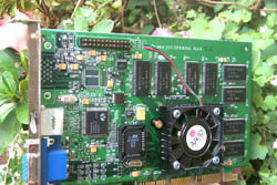 Эта карта имеет AGP 2x (подчеркиваю, что не 4x) конструктив, 32 Мбайт SDRAM 5.5 ns памяти, расположенной по обеим сторонам платы.