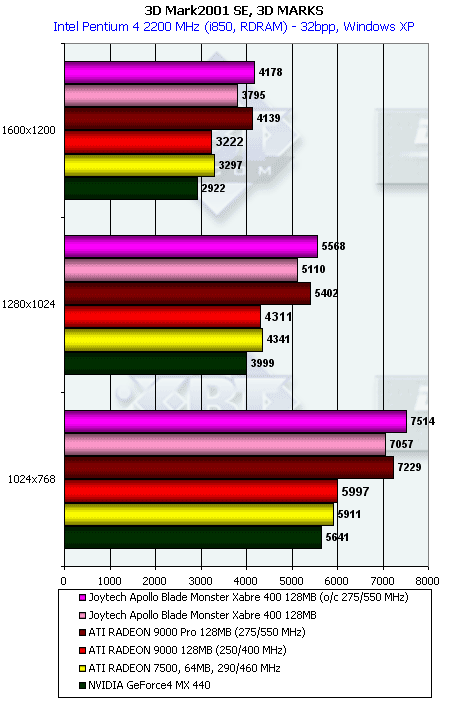 | Joytech Apollo Blade Monster Xabre 400 128MB DDR | 1280x1024x85Hz, 1024x768x100Hz (в 1600х1200 — качество не столь хорошее) |