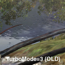 Итак, мы с вами убедились, что программисты SIS не сидели зря. Я напомню, что выше мы наблюдали малозначительное падение производительности на версии 3.03, однако вы посмотрите, какое повышение качества дала эта версия (правда, есть мнение, что весь прирост идет за счет смещения LOD BIAS, но мне не удалось получить точные доказательства этому)! Конечно, до "естественно" нормального качества дело еще не дошло, но надеюсь, что вскоре в переключении на TurboMode=0 уже не будет необходимости. Да и качество отработки пиксельных шейдеров стало намного выше.