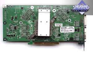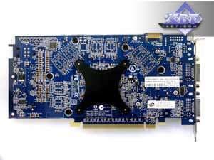 | Карта имеет 128 МБ памяти DDR SDRAM, размещенной в 8-ми микросхемах на лицевой стороне PCB. Микросхемы памяти Hynix. Время выборки у микросхем памяти 2.2 ns, что соответствует частоте работы 450 (900) МГц. | ![]() |