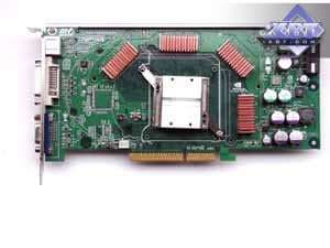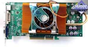 - XFX GeForce 6800 GT PCI-E 256MB — изделие, которое может легко составить конкуренцию более дорогому предыдущему продукту, поскольку разгон подобных карт вполне позволяет достичь частот, близких к 6800 Ultra. А цена весьма сильно меньше. По всем остальным параметрам карта не имеет нареканий, работоспособность отличная, качество в 2D отменное. И такой же минус в отношении планки жесткости, которая не дает доступа к разъему SLI.