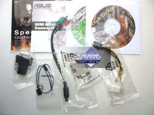Базовый комплект поставки должен включать в себя: руководство пользователя, диск с драйверами и утилитами, переходник-адаптер DVI-to-VGA, DVI-to-HMDI адаптер (кроме 9800 GX2), адаптер компонентного вывода (TV-out) (кроме 9800 GX2), а также разветвители внешнего питания и аудио-шнурок для соединения со звуковой картой (для передачи звука по HDMI). Ниже мы покажем, что предлагается к каждой карте дополнительно.