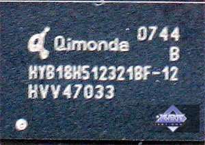 | Карта имеет 256 МБ памяти GDDR3 SDRAM, размещенной в 4 микросхемах на лицевой стороне PCB. Микросхемы памяти Qimonda (GDDR3). Время выборки у микросхем памяти 1.2 ns, что соответствует частоте работы 800 (1600) МГц. | ![]() |