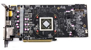 Картa имеeт 2048 МБ памяти GDDR5 SDRAM, размещенной в 8 микросхемах на лицевой стороне PCB. Микросхемы памяти Elpida (GDDR5). Микросхемы рассчитаны на номинальную частоту работы в 1500 (6000) МГц. | ![]() |