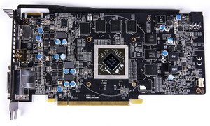 Картa имеeт 2048 МБ памяти GDDR5 SDRAM, размещенной в 8 микросхемах на лицевой стороне PCB. Микросхемы памяти Elpida (GDDR5). Микросхемы рассчитаны на номинальную частоту работы в 1500 (6000) МГц. | ![]() |