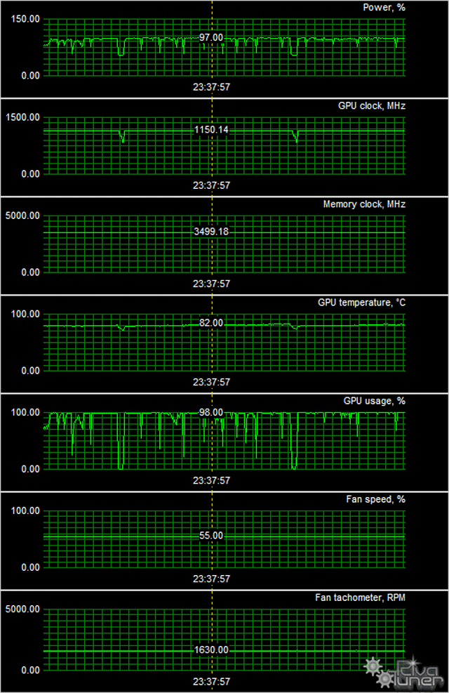 Очень значительный заводской разгон позволил карте Asus оказаться самой быстрой среди однопроцессорных ускорителей.
