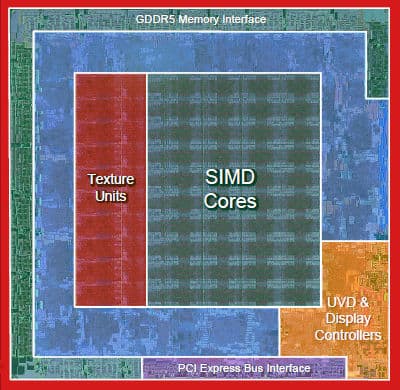 Поэтому было решено ускорить чип, добившись его работы на повышенных частотах. Поэтому инженеры компании переработали структуру RV770, переделав внутренние цепи и выводы чипа. А по периметру GPU был добавлен так называемый decap ring из фильтрующих (блокировочных) конденсаторов, которые помогают разделять сигналы, снижая шумы от соседних цепей. Эти изменения и повлекли небольшое увеличение количества транзисторов, в большей степени оказав влияние на увеличившуюся площадь ядра.