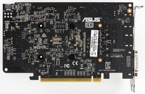 На торце в хвостовой части карты имеется 4-контактный разъем питания для корпусного вентилятора (технология Asus FanConnect). Переключив его с материнской платы либо установив дополнительно, можно заставить его работать, увеличивая или уменьшая обороты в соответствии с нагревом GPU.