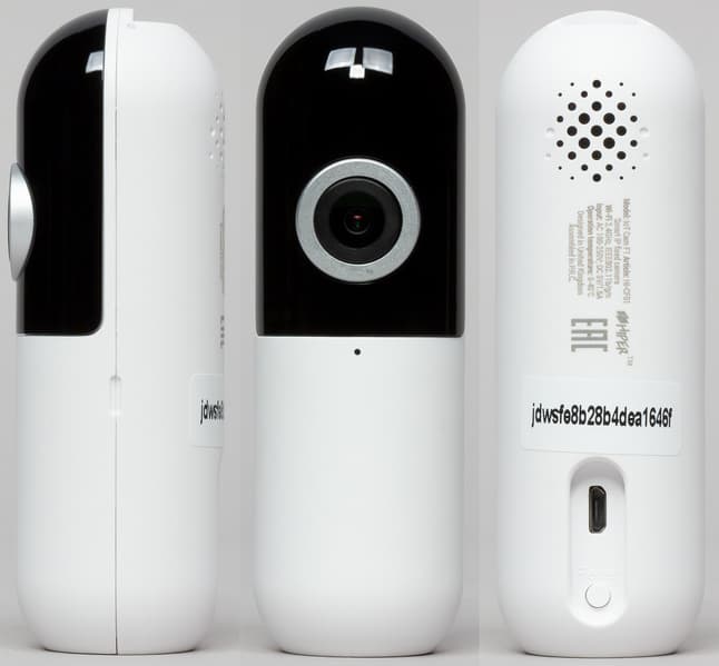 Камера выполнена в небольшом цилиндрическом корпусе. В передней части — объектив и небольшое отверстие микрофона. Сзади — отверстия динамика, немного информации об устройстве, порт Micro-USB для подключения питания, кнопка перезагрузки и активации режима подключения.