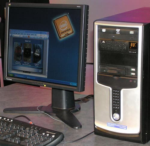 и напоследок Пэт поиграл на компьютере с 4-ядерным процессором Kentsfield (первая публичная демонстрация ПК на этом процессоре), который выйдет только в 2007 году.