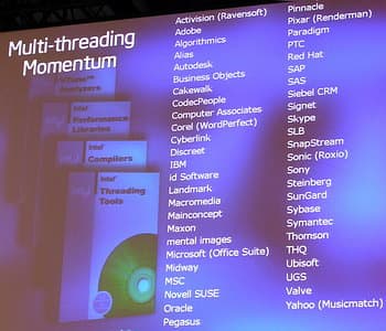 Параллельно корпорация и ее партнеры ведут активную работу над переводом широкого спектра ПО на многопотоковость.