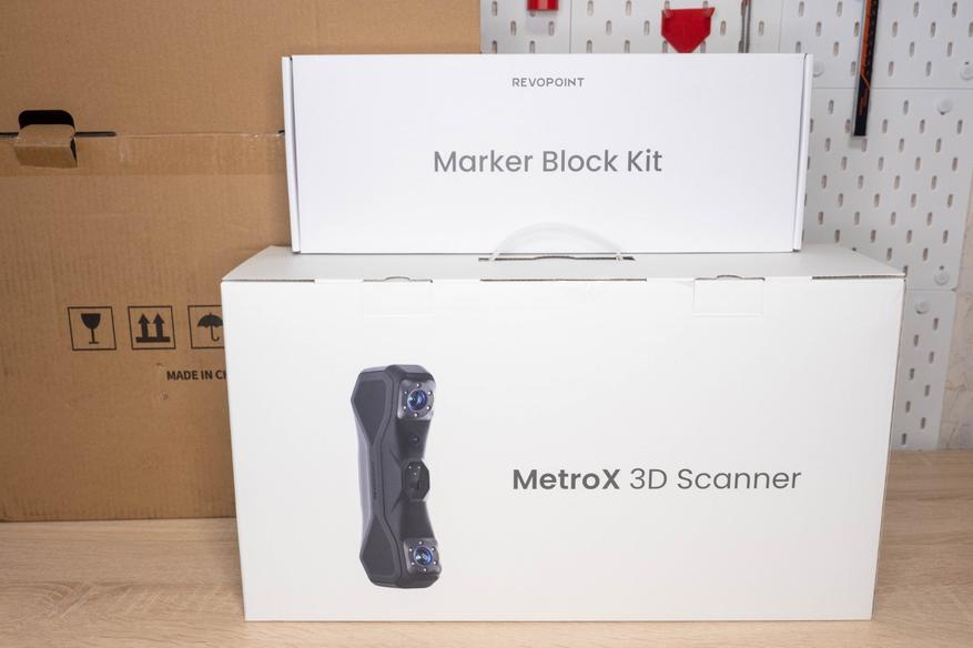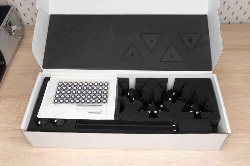 У меня расширенная версия, поэтому помимо большой коробки со сканером, в картонной упаковке была еще одна с дополнительными маркерами. Основной комплект находится в качественно сделанном кейсе, выглядит дорого.