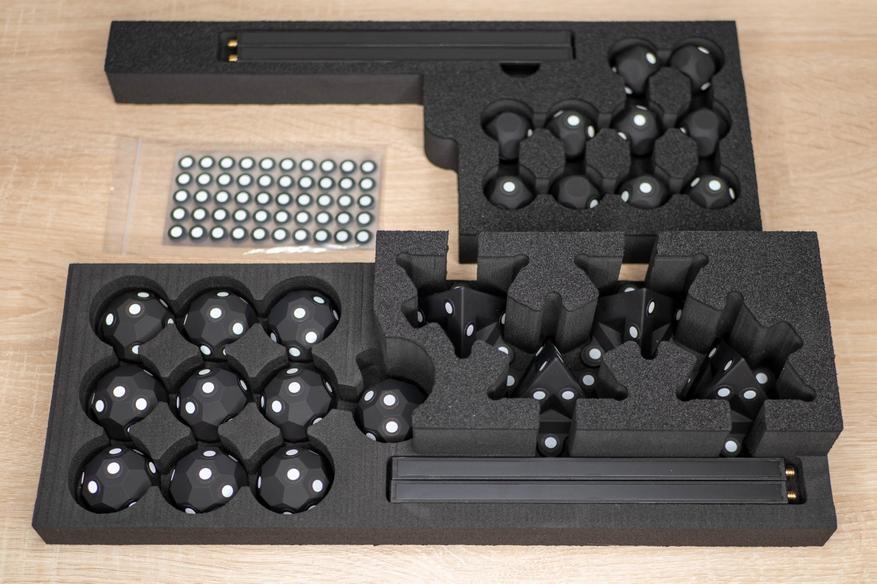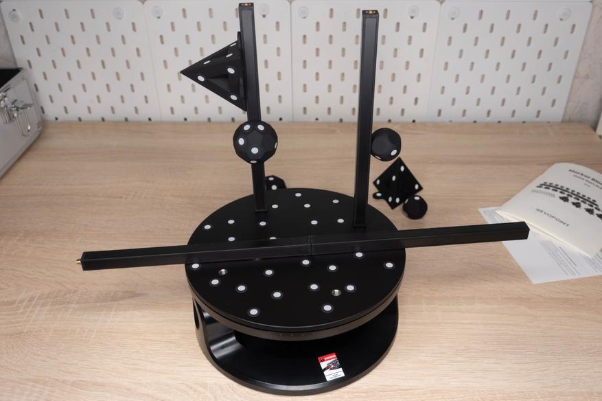 • В дополнительной комплектации есть несколько видов объемных маркеров и стоек для поворотного стола, что делает его немного дороже, но в этом случае не придется ничего дозаказывать или печатать для комфортного сканирования деталей среднего и крупного размера.