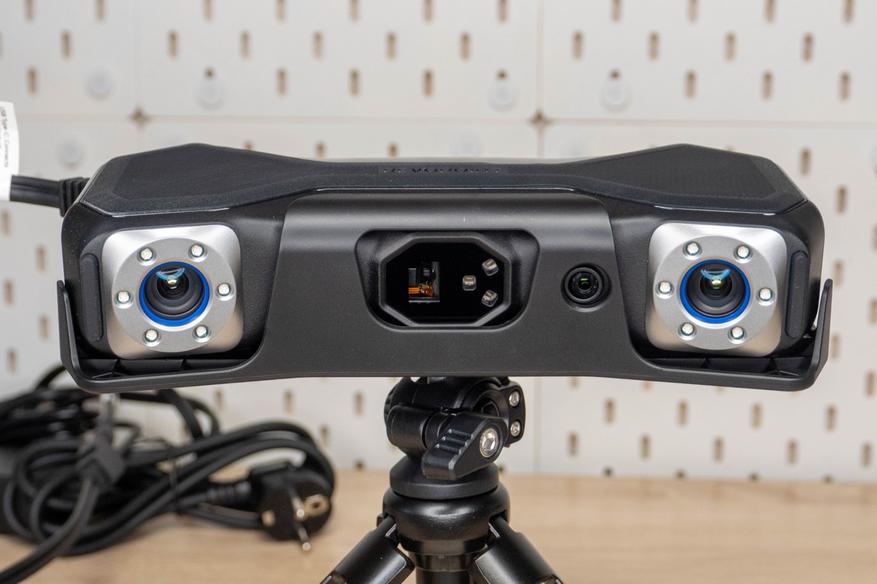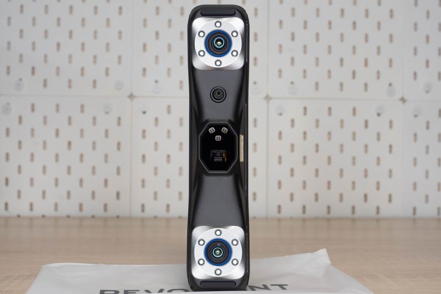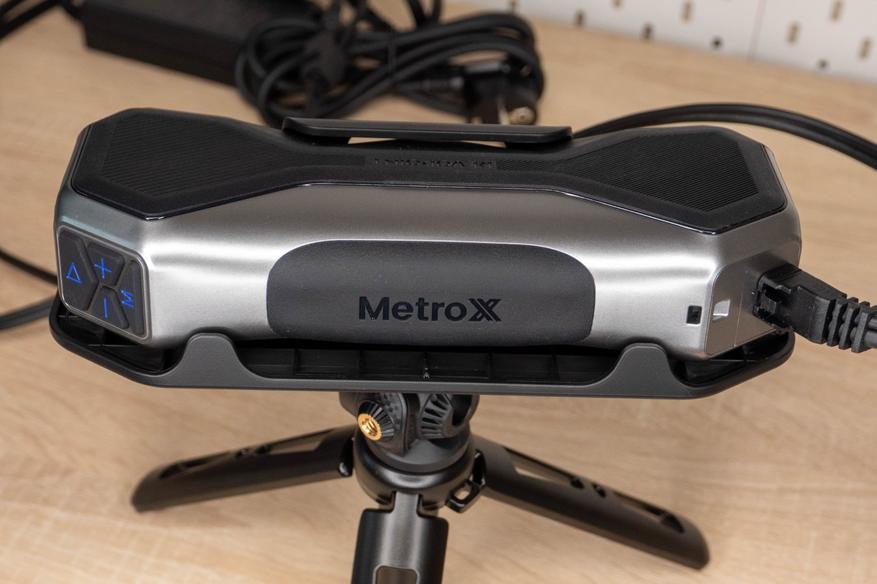 У MetroX оптическая система представлена двумя камерами с кольцевой подсветкой, третий сенсор используется для захвата текстуры в режиме цветного сканирования. В центре расположен блок излучателей, состоящий их трех лазеров, повернутых под разными углами и проектора.