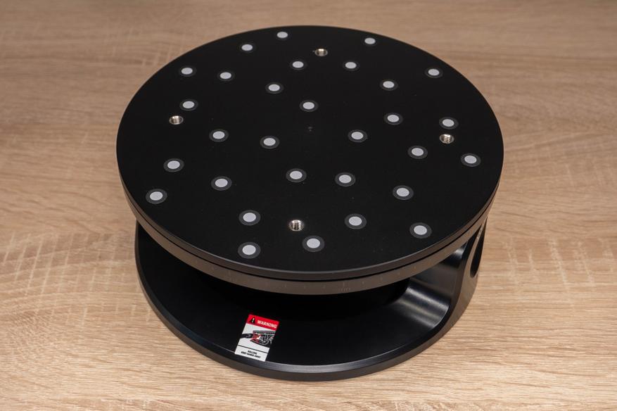 В корпусе сканера нет резьбы, поэтому для крепления на штативе используется специальная подставка. Выступы не дадут ему выскользнуть, но при сильной встряске он может выпасть, так что рекомендуется использовать его только во время статичной съемки в паре с поворотным столом.