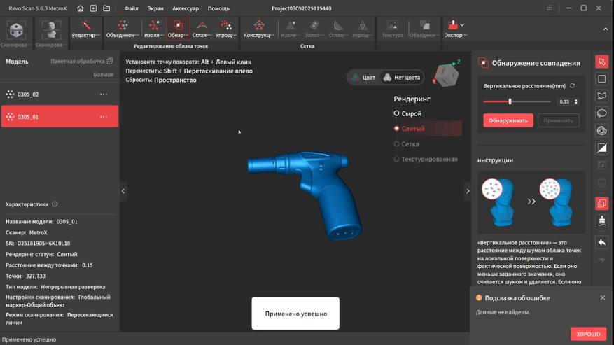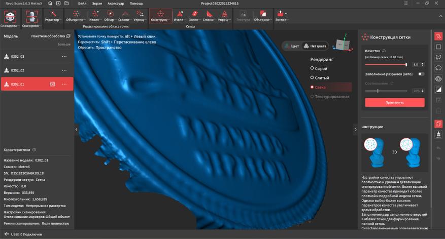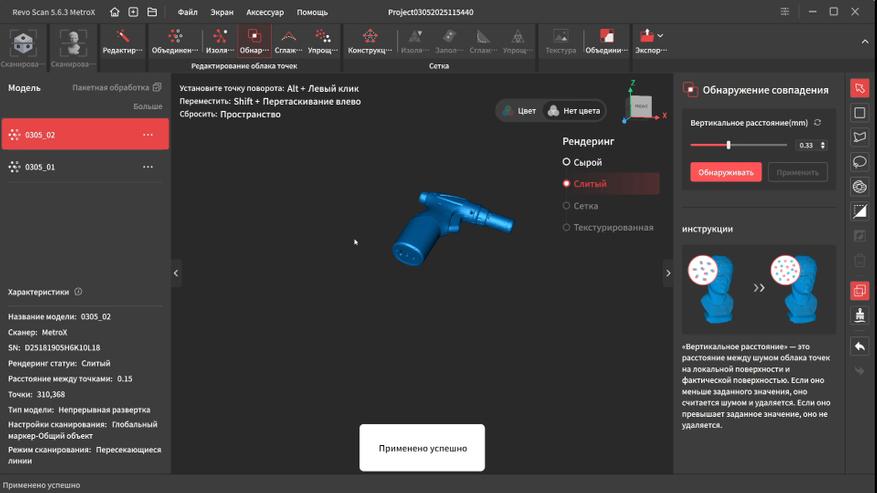У Revopoint получилось создать действительно универсальную модель, которая способна с высокой точностью и детализацией сканировать практически любые типы поверхности без необходимости их матирования благодаря поддержки нескольких режимов работы: