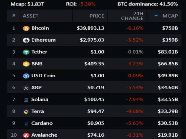 Биткоин снова дешевле $40 000: топ-10 криптовалют на 22 апреля 2022