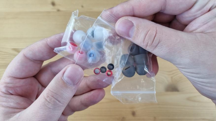 В комплекте была документация, плотный синий бокс, пакетик с фильтрами и два набора неплохих силиконовых амбушюр.