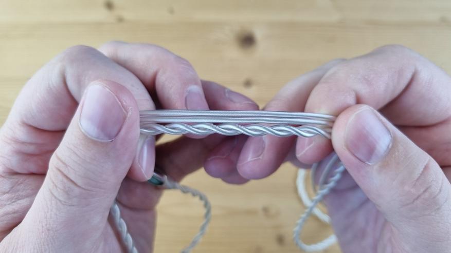 Кабель внешне приятный, он толстый, витой, с вилочными QDC коннекторами и с сопротивлением на левом и правом канале по 0.6 Ома, а на общем — 0.135 Ома.