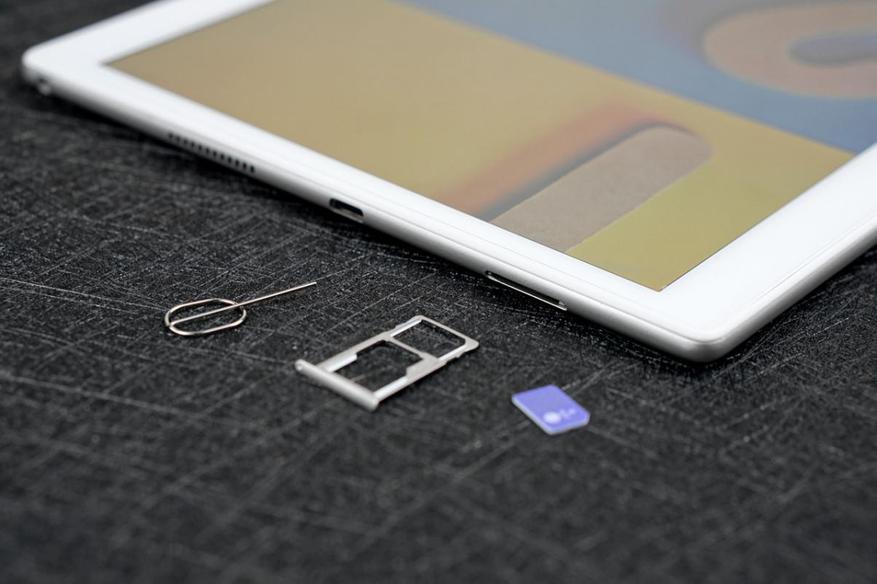 Планшет поддерживает 4G сети, а также возможность расширения памяти. В лоток для SIM-карты можно установить либо 2 нано-SIM-карты, либо SIM и карту MicroSD.