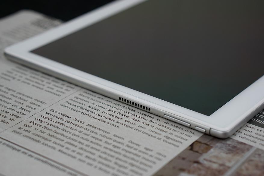 Как и X, Alldocube X Neo с металлической задней крышкой и скругленными углами выглядит очень аккуратно и элегантно. Но для планшета в 2020 году рамки слегка великоваты. Большинство предпочли бы современный дизайн Apple iPad Pro или Huawei MatePad Pro. Над дисплеем находится фронтальная камера и датчик освещенности.