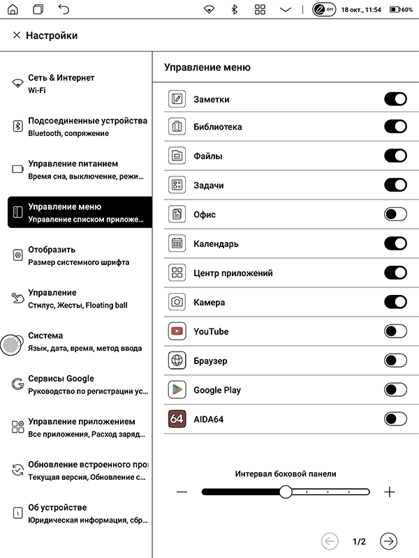 Главное меню настроек, напротив, не очень насыщенное — все лишнее для ридера разработчики выпилили. В принципе, оно и правильно — чем меньше в системе бесполезного хлама, тем быстрее она работает.