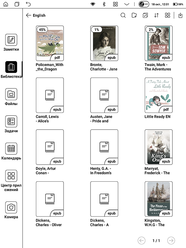 Ранее я не имел дела с цветными дисплеями E Ink такой диагонали. Точнее — как? Ряд крупноформатных моделей Onyx я в руках вертел, но чтобы пользоваться в течение продолжительного периода времени — нет. Между тем PocketBook InkPad Eo попал ко мне в руки еще в сентябре, и месяц я читал (и не только читал) именно с него.
