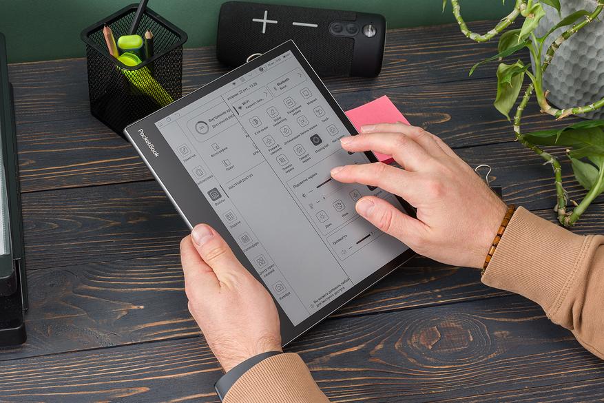 А вывод простой. Были у меня опасения, что «первый блин» (читай — создание блокнота с цветным экраном E Ink) выйдет у PocketBook комом, но нет. Устройство получилось одновременно и симпатичным, и удобным, и функциональным. Да, здесь нет защиты от воды и физических кнопок — стандартных опций для флагманских моделей этой компании. Но взамен предложили, как мне кажется, ряд даже более важных фишек: скажем, камеру и реально крутой массив из четырех микрофонов. Особенно последний радует — это уникальная для ридеров фишка.