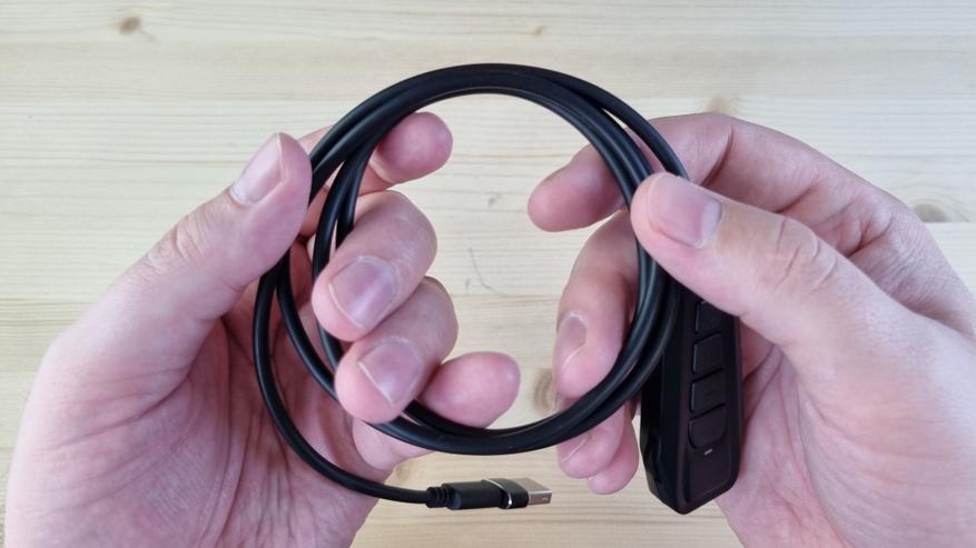 Кабель у неё обычный, есть кнопка включения, уровень и функция «mute» для микрофона, два светодиода, механическая регулировка громкости и тот самый режим 7.1 на отдельной кнопке. С качеством микрофона на ножке вы можете ознакомиться самостоятельно — я вставлю отрывок из записи.