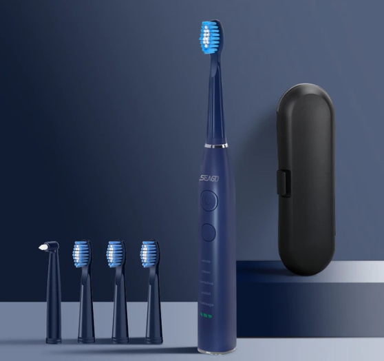 Ещё одна звуковая щётка от производителей Seago. Многие отмечают его стильный дизайн. Устройство выглядит намного дороже своей стоимости, она отлична подойдет в качестве подарка. За одну минуту её моторчик способен выполнять целых 40 тысяч колебаний. В наличии (как и у многих других) имеется таймер и пять режимов. Ёмкость аккумулятора составляет 1500 мач, чему должно хватить до одного года в режиме ожидания. Но людей проверивших эту информацию мне не удалось найти, но в любом случае с автономностью проблем не должно быть. На полную зарядку необходимо будет уделить 8 часов.
