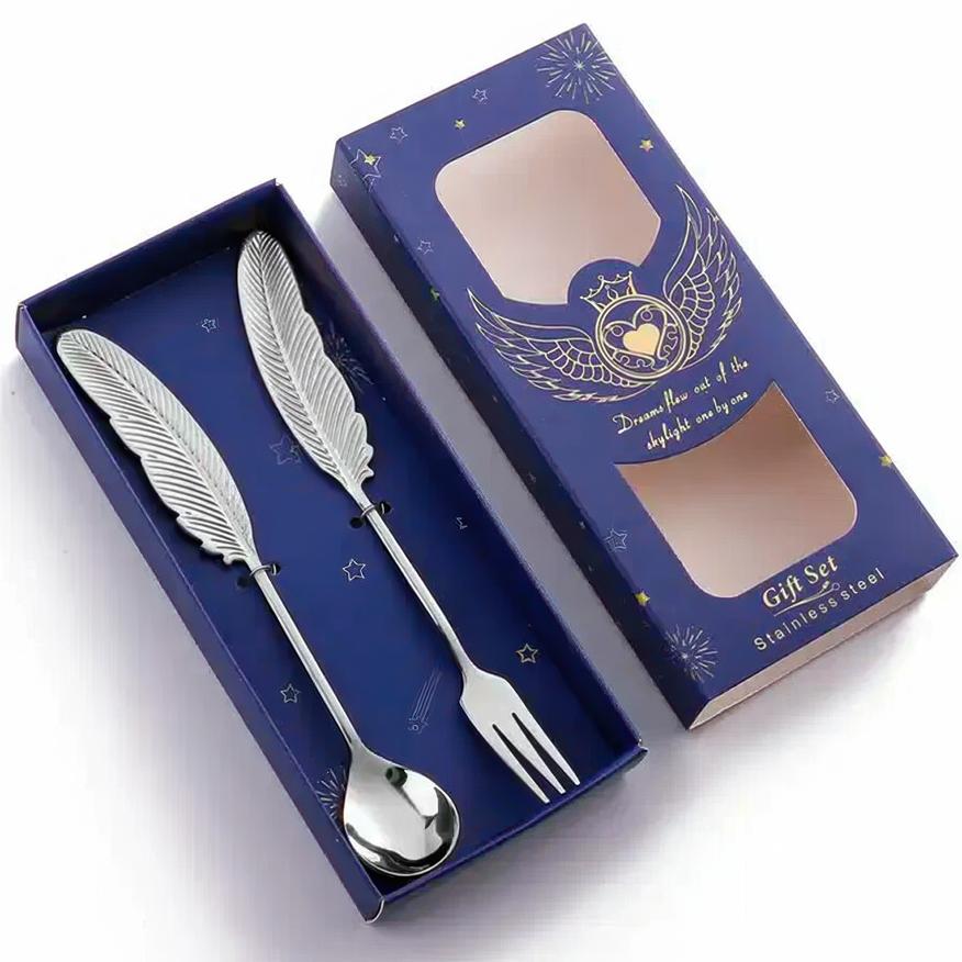 Для творческих натур я нашёл особенный комплект — чайную ложку и десертную вилку, увенчанные изящными навершиями в виде пера.