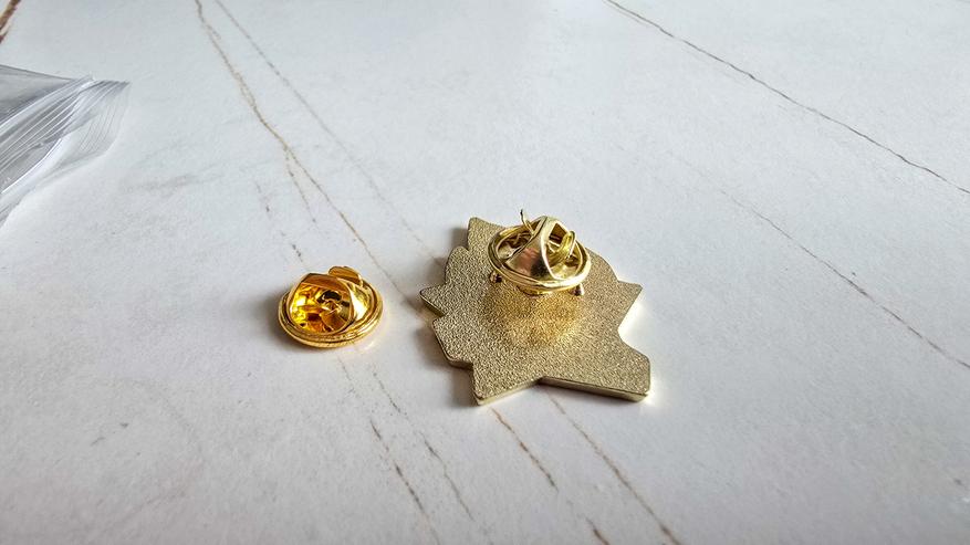 Комплектация не сказать чтобы богатая, но всё что нам требуется, в комплекте есть. А это сам значок, и застежка. Точнее две застежки, на случай если одна будет утеряна или сломана
