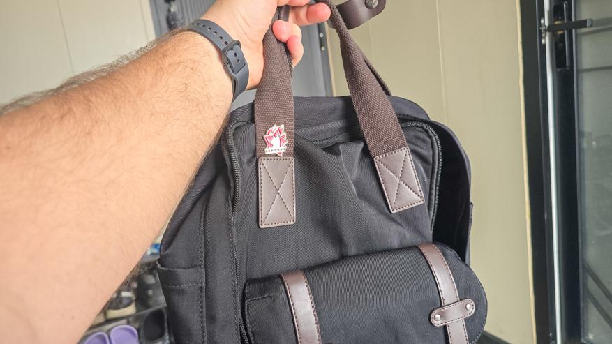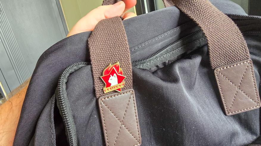 Даже без прочтения текста, котик с ярко красным пламенем прикольно смотрится на ручке рюкзака. А на чёрном и коричневом фоне даже привлекает внимание, немножко разбавляя скучный офисный дизайн моего ежедневного рюкзака.