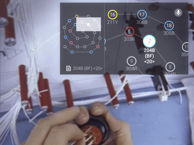 Кабелей может быть так много, что объем информации, необходимый для правильного формирования жгута, оказывается слишком большим, чтобы сотрудники могли с ним справиться за разумное время. Поэтому в Boeing постоянно ищут средства, которые позволили бы сотрудникам оперативно получать необходимую информацию, не отвлекаясь и не занимая руки. Достаточно сказать, что еще в 1995 году предпринимались попытки использовать технологию дополненной реальности на базе носимого на голове дисплея Navigator 2. С тех пор микроэлектроника и программное обеспечение шагнули далеко вперед. Использование Google Glass позволяет иметь оперативный доступ к информации и следить за правильностью действий.