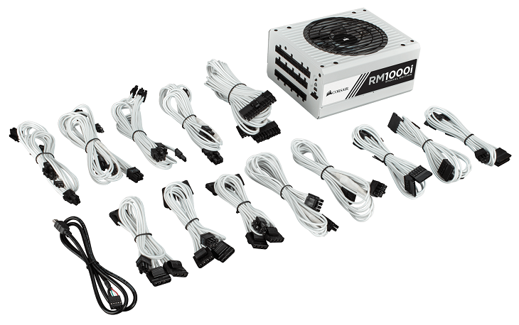 Что касается модели Corsair RM1000i Special Edition, то ее мощности в 1 кВт хватит для питания игрового ПК с двумя или тремя видеокартами в разгоне, хотя имеется сразу восемь кабелей с коннекторами питания для видеокарт. Всего будет выпущено 100 блоков модификации Special Edition. Они получат белую расцветку корпуса и отсоединяемых кабелей. Вентилятор с полупрозрачными лопастями также обзаведется белой подсветкой.