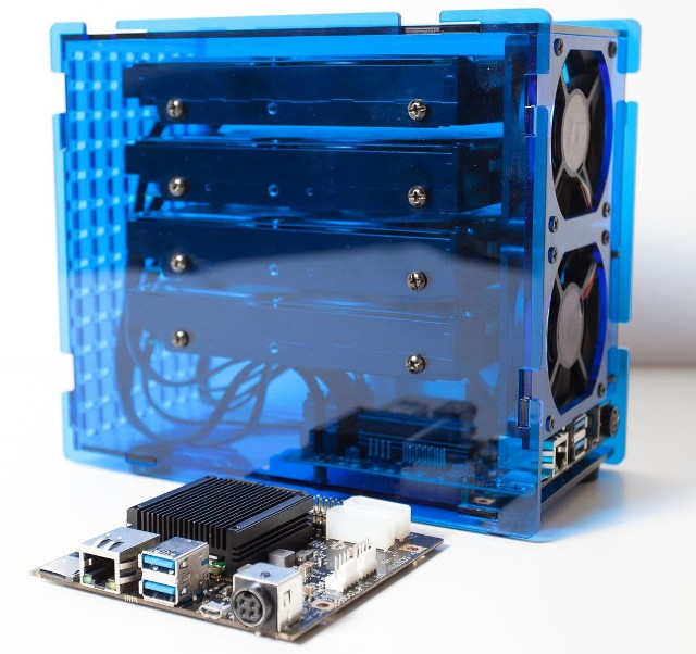 Имеется один сетевой порт Gigabit Ethernet, два USB 3.0 и один microUSB для консольного доступа, 14 выводов GPIO, 4 I2C и два коннектора для вентиляторов (типоразмера 70 мм в комплектации с корпусом). Базовый набор без корпуса предлагается вкладчикам за $175, комплект со сборным корпусом обойдется на $20 дороже.