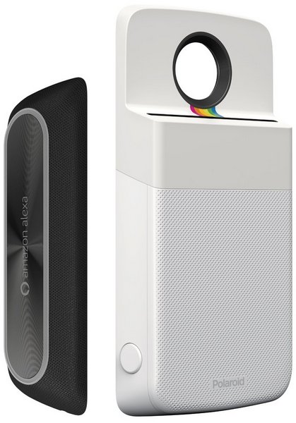 Как можно видеть на изображении, первый представляет собой умную акустическую систему с поддержкой Amazon Alexa. То есть это портативный аналог АС Amazon Echo. Второй модуль — принтер Polaroid Insta-Share, позволяющий моментально печатать полученные снимки.