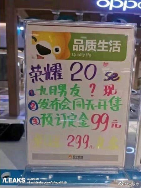 По одной из версий, он будет выпущен под названием Honor 20SE. Это подтверждает реклама в одном из китайских магазинов, который уже предлагает оформить предварительный заказ на новый смартфон.