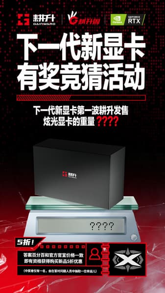 Что касается Gainward, тот тут тизеров только два, но для пользователей они даже в какой-то степени более полезны. Дело в том, что тизеры запущены одновременно с двумя конкурсами: первый предлагает угадать стоимость видеокарт, другой — массу. Тем, кто окажется прав, обещана скидка на новинки в размере 50%! К сожалению, конкурсы актуальны только для китайской аудитории. Впрочем, и о цене, и о габаритах новинок уже кое-что известно.