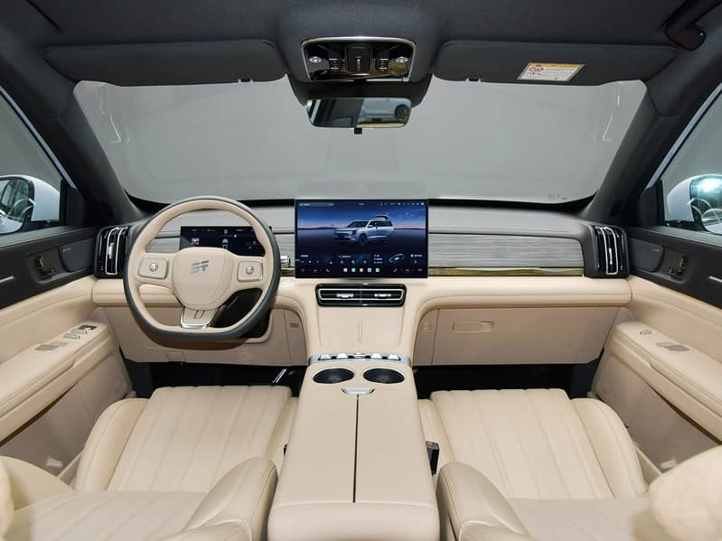 В комплектации машины — экран с диагональю 15,6 дюйма, который может отклоняться на 10 градусов влево и вправо, аудиосистема с 10 динамиками, кожаная обивка кресел, панорамная крыша с люком и т.д. Все сиденья машины имеют электрорегулировки и могут быть сложены, образуя почти 3-метровую кровать одним нажатием кнопки.
