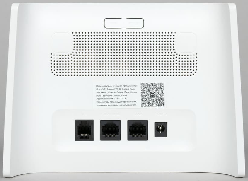Основная характеристика — возможности встроенного сотового модема. В данном устройстве установлен модем для работы в сетях третьего и четвертого поколений, обеспечивающий скорости приема и передачи в конфигурации LTE Cat6 до 300/50 Мбит/с. Набор поддерживаемых диапазонов может зависеть от региона, в протестированной модели это LTE FDD B1/3/7/8/20/32, TDD B38 и UMTS B1/3/8. Привязки к оператору конечно нет. Используется карта формата Nano-SIM. Есть поддержка голосовых вызовов через VoLTE и порт RJ11 для телефонного аппарата. Через веб-интерфейс можно пользоваться SMS и USSD. К сожалению, производитель реализовал только встроенные антенны, что может ограничивать использование модели в зонах со слабым сигналом.