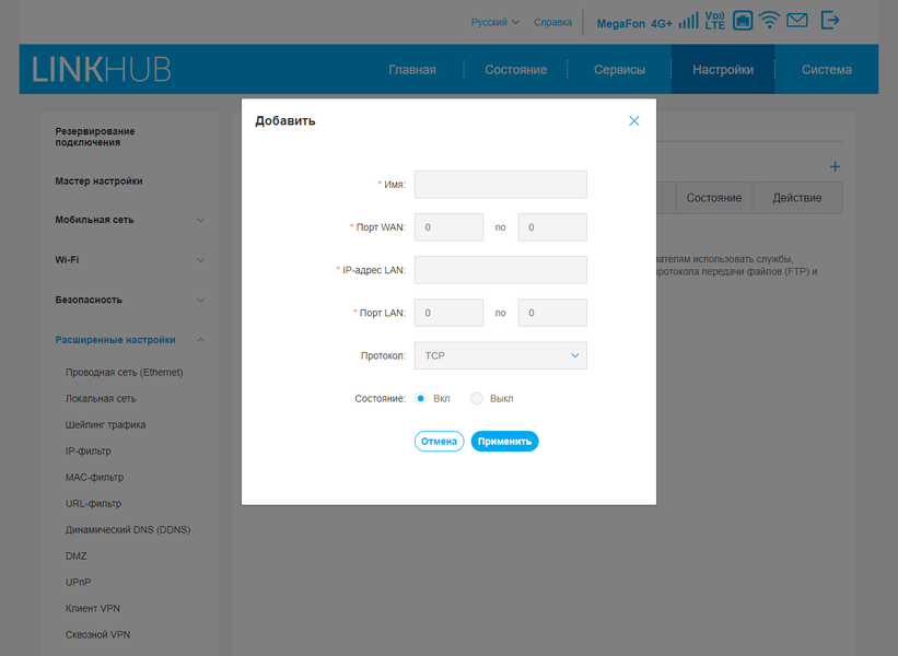 В нем можно настроить подключение к провайдеру через сотовый модем и кабель, работу беспроводных сетей, проверить текущее состояние и клиентов, обновить прошивку и так далее. Заметим, что программа работает только при локальном подключении к беспроводной сети роутера, облачного режима у нее нет.